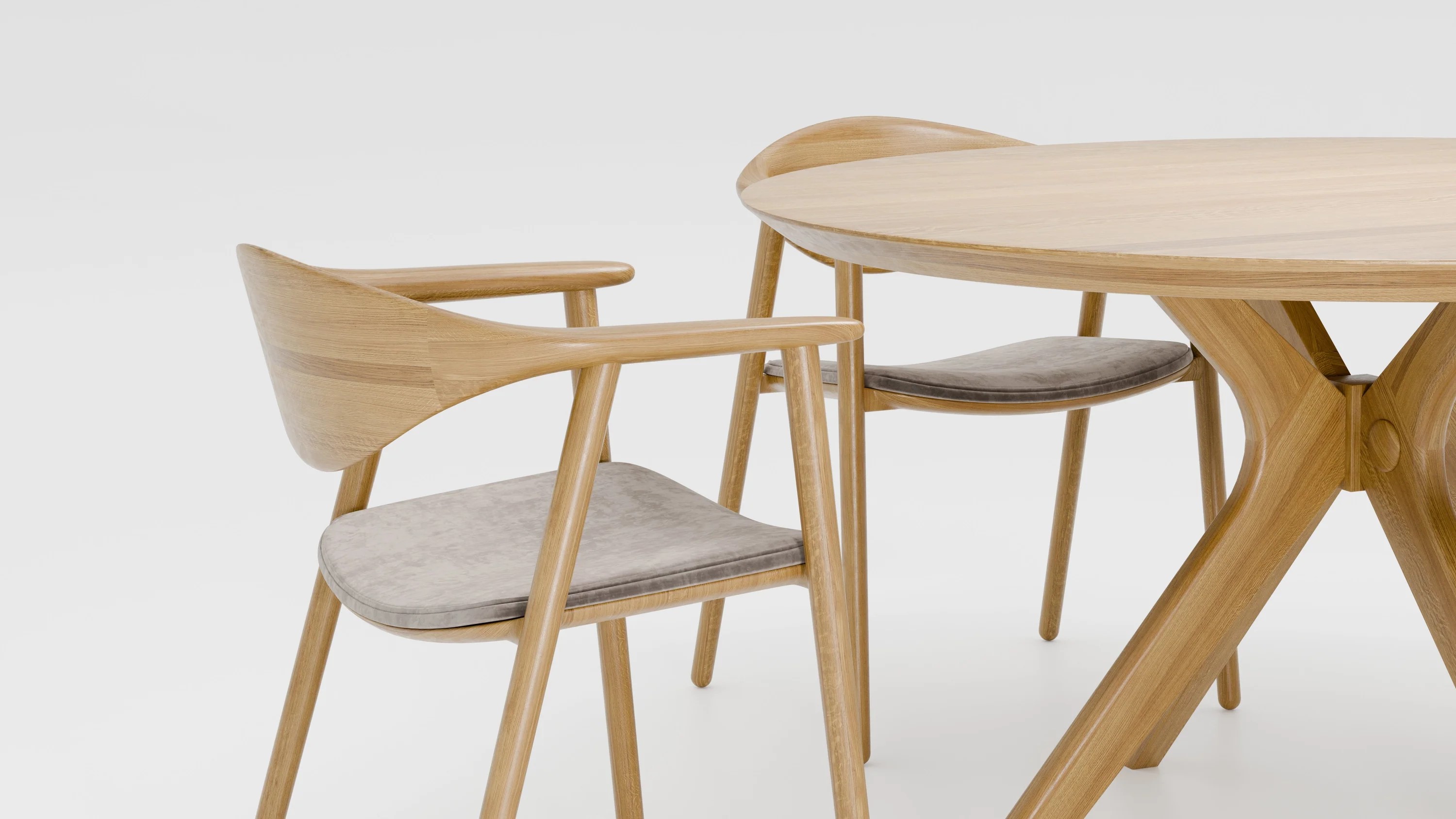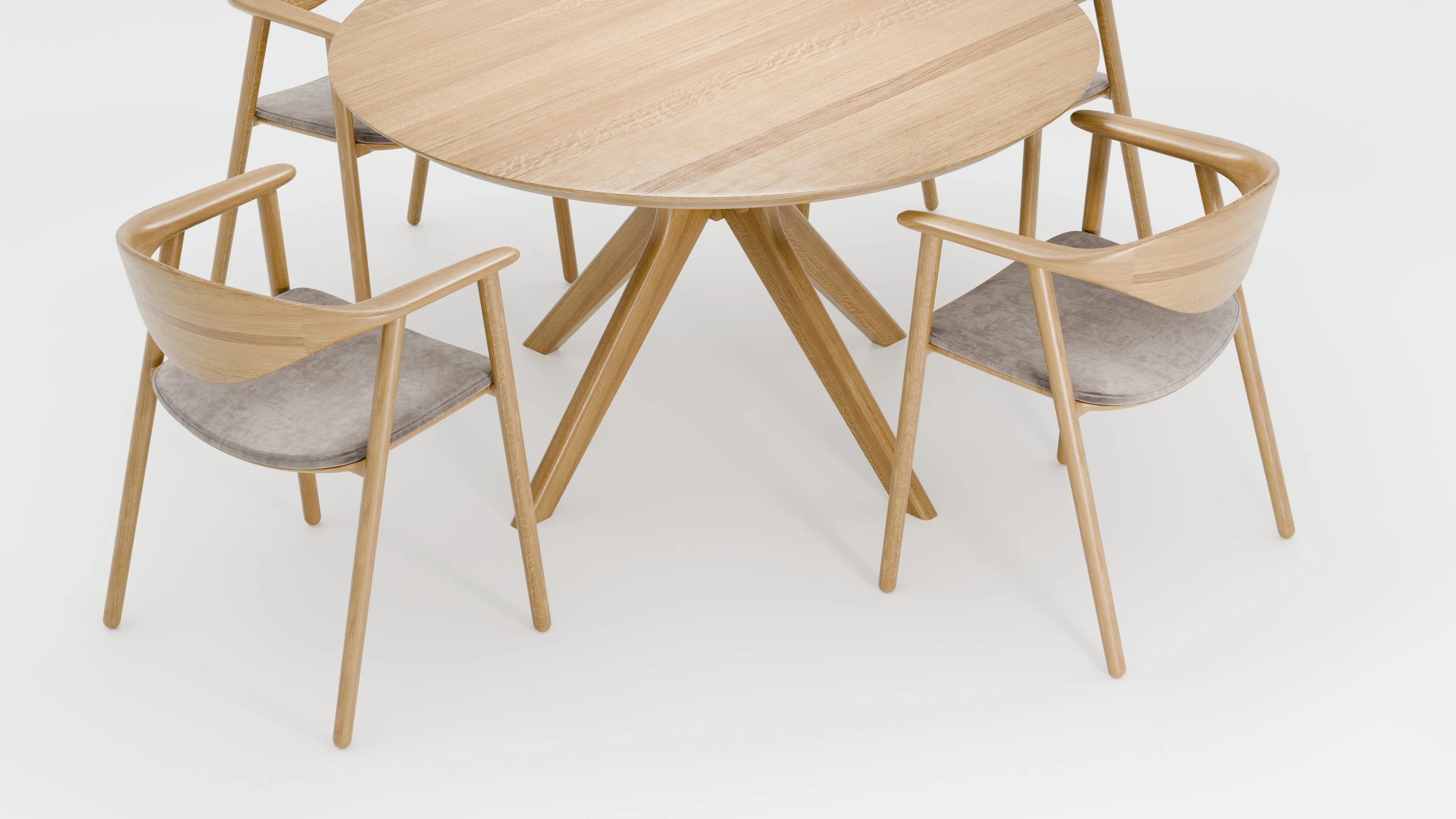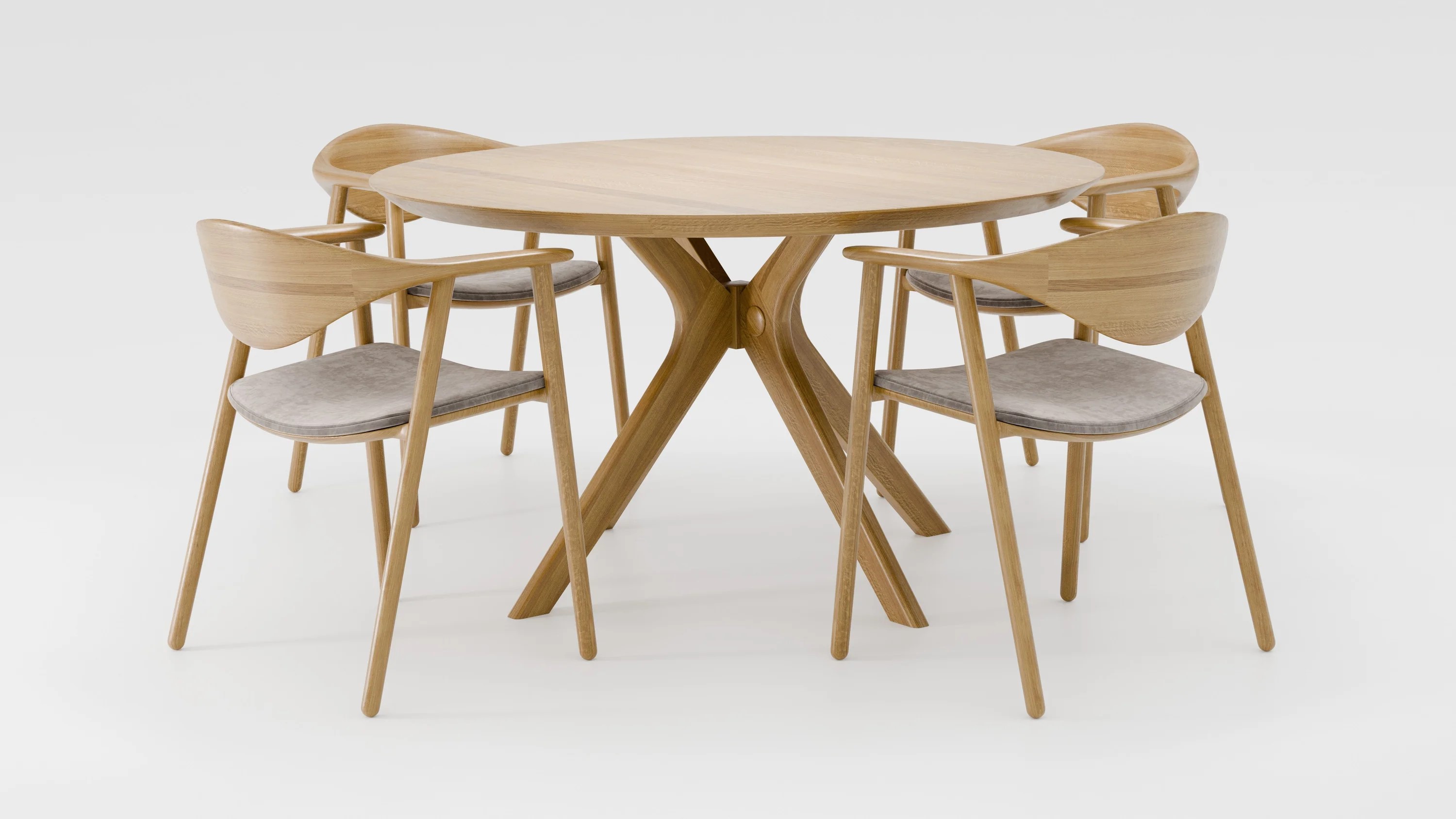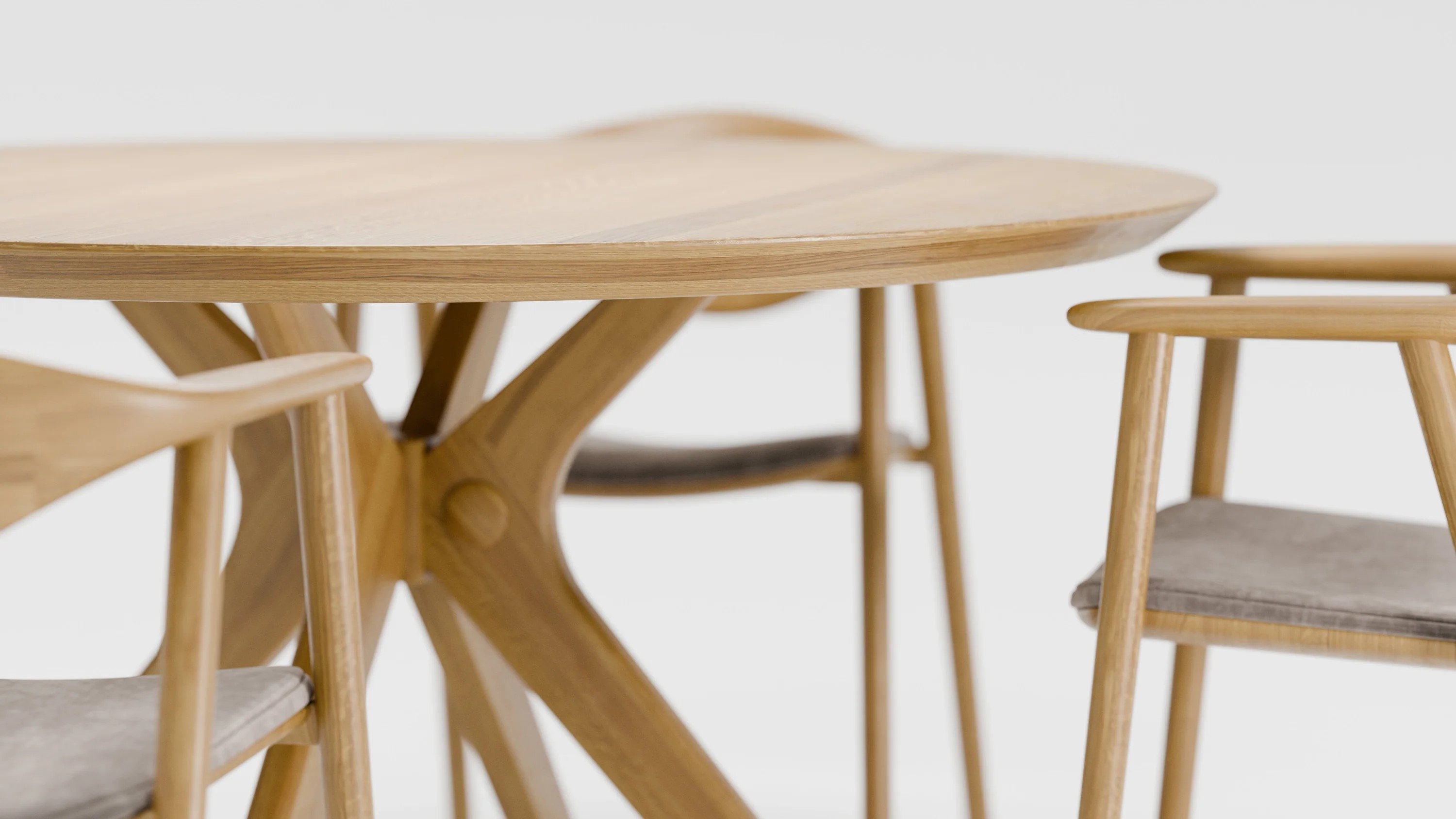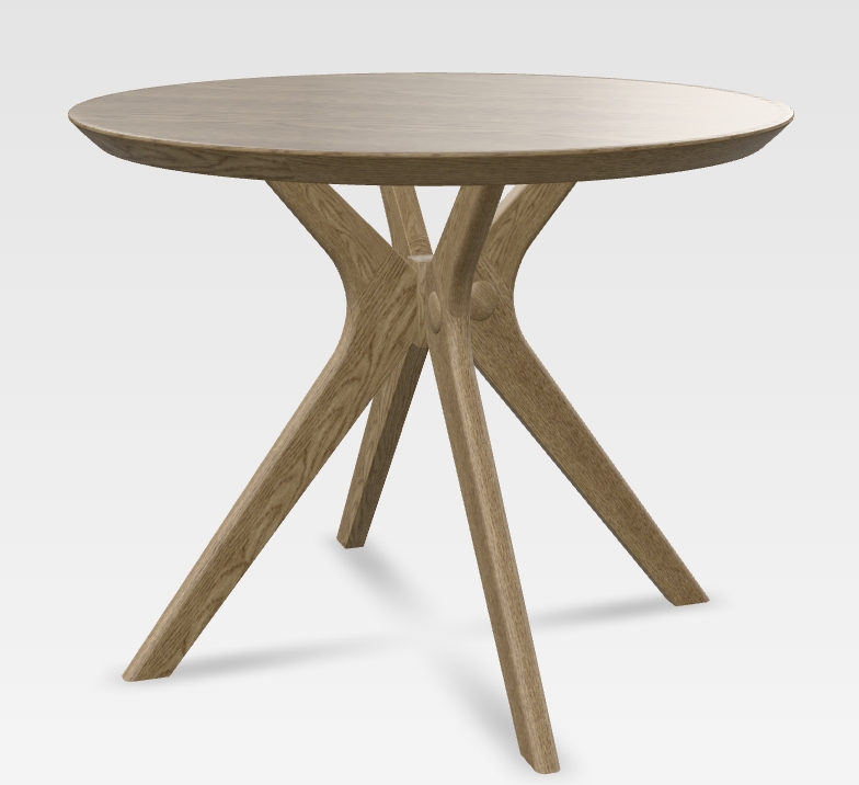 - Изысканное исполнение — гладкая круглая столешница подчёркивает естественную текстуру дуба и демонстрирует высочайшее качество ручной работы.