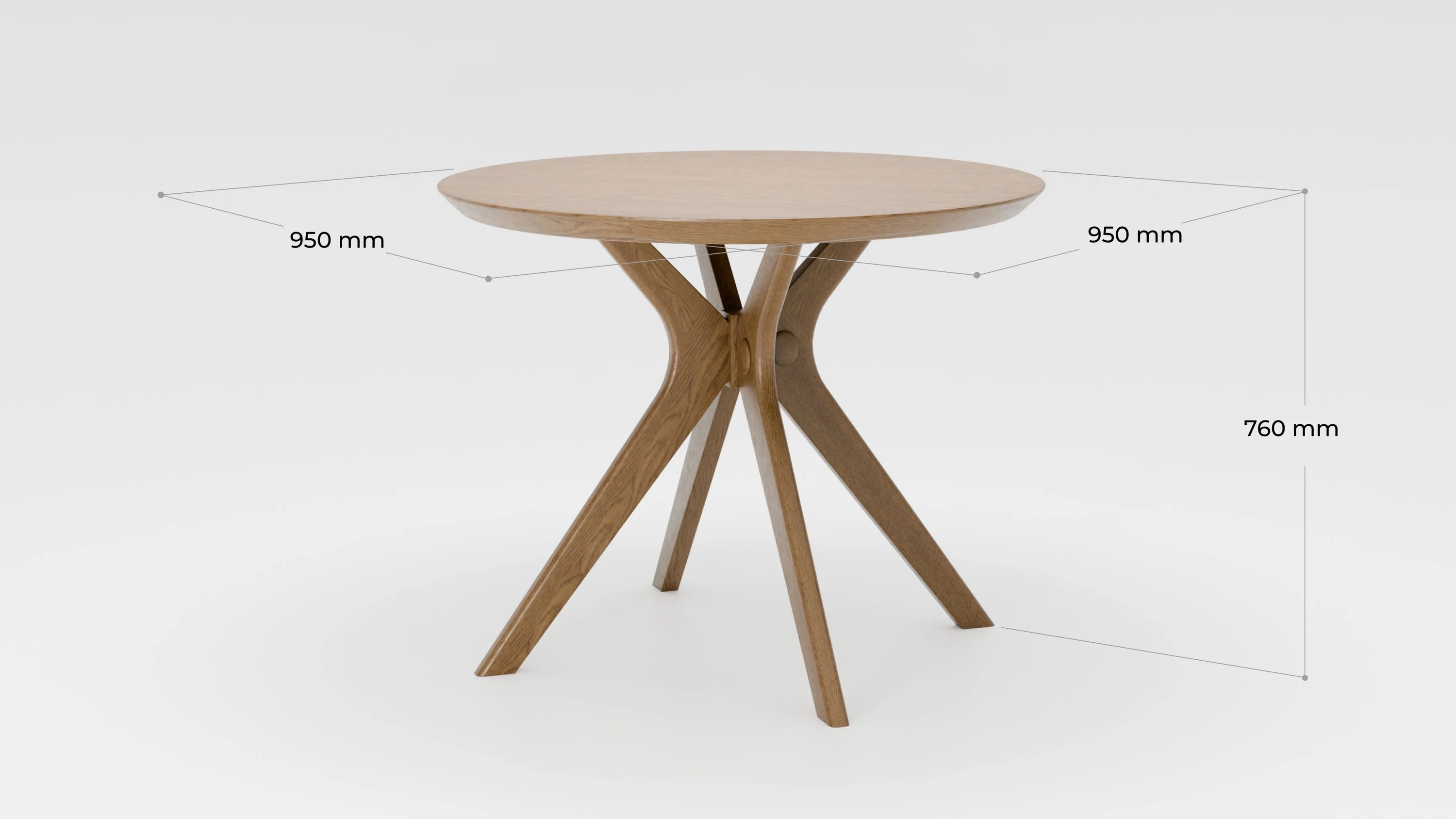 Стол круглый Амброджио — из массива дуба, сочетает элегантный дизайн и прочность. Компактный размер 950×950×760 мм идеально подойдёт для уютных кухонь и стильных интерьеров.