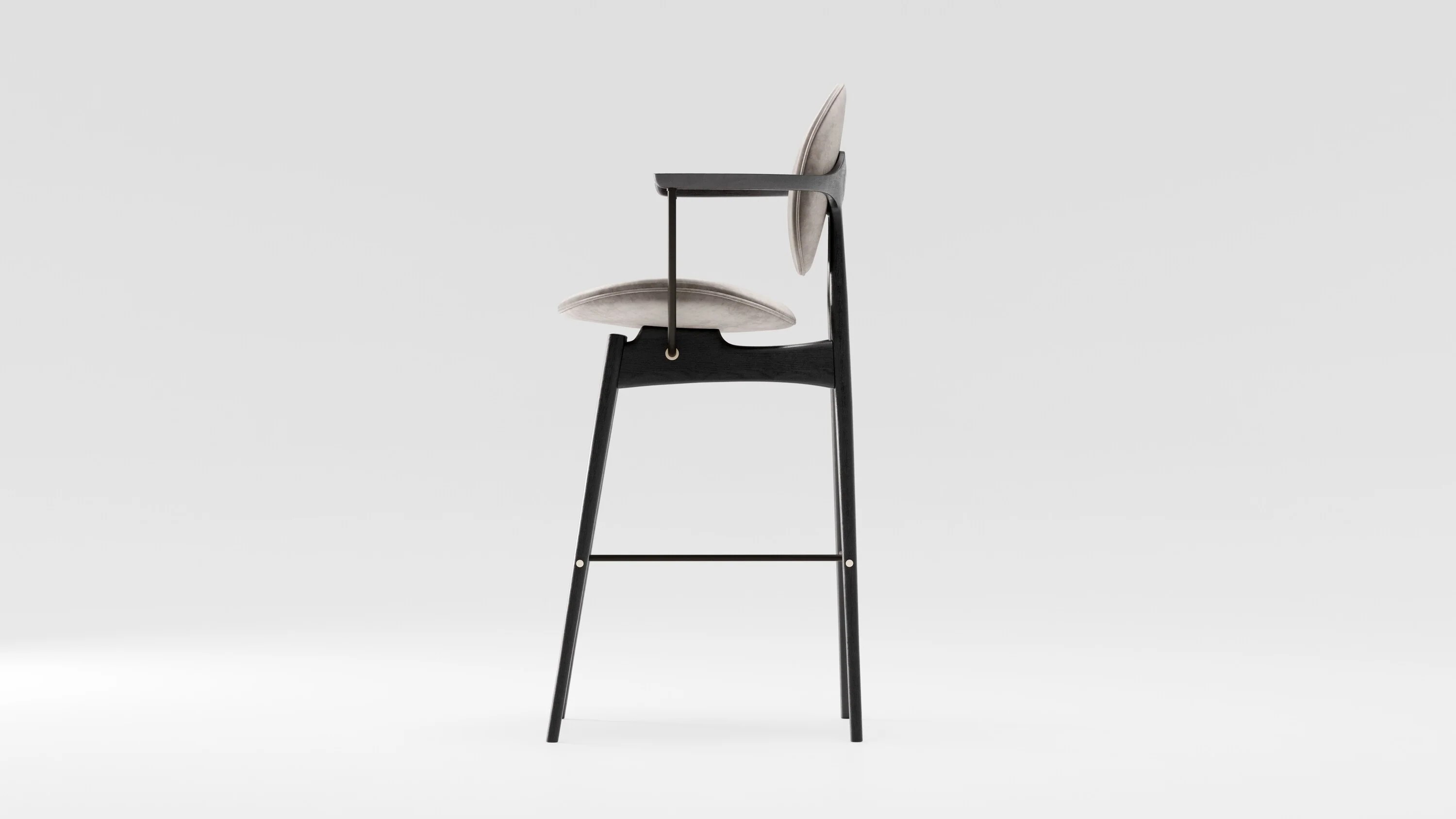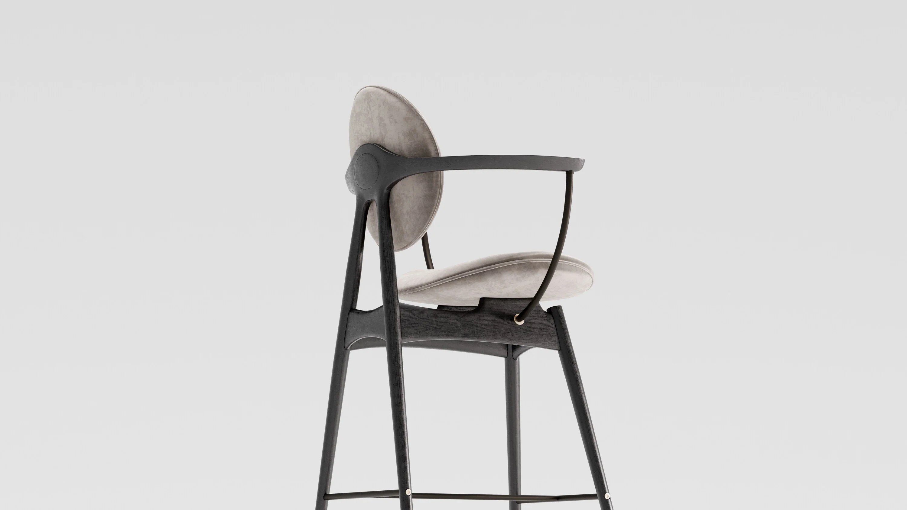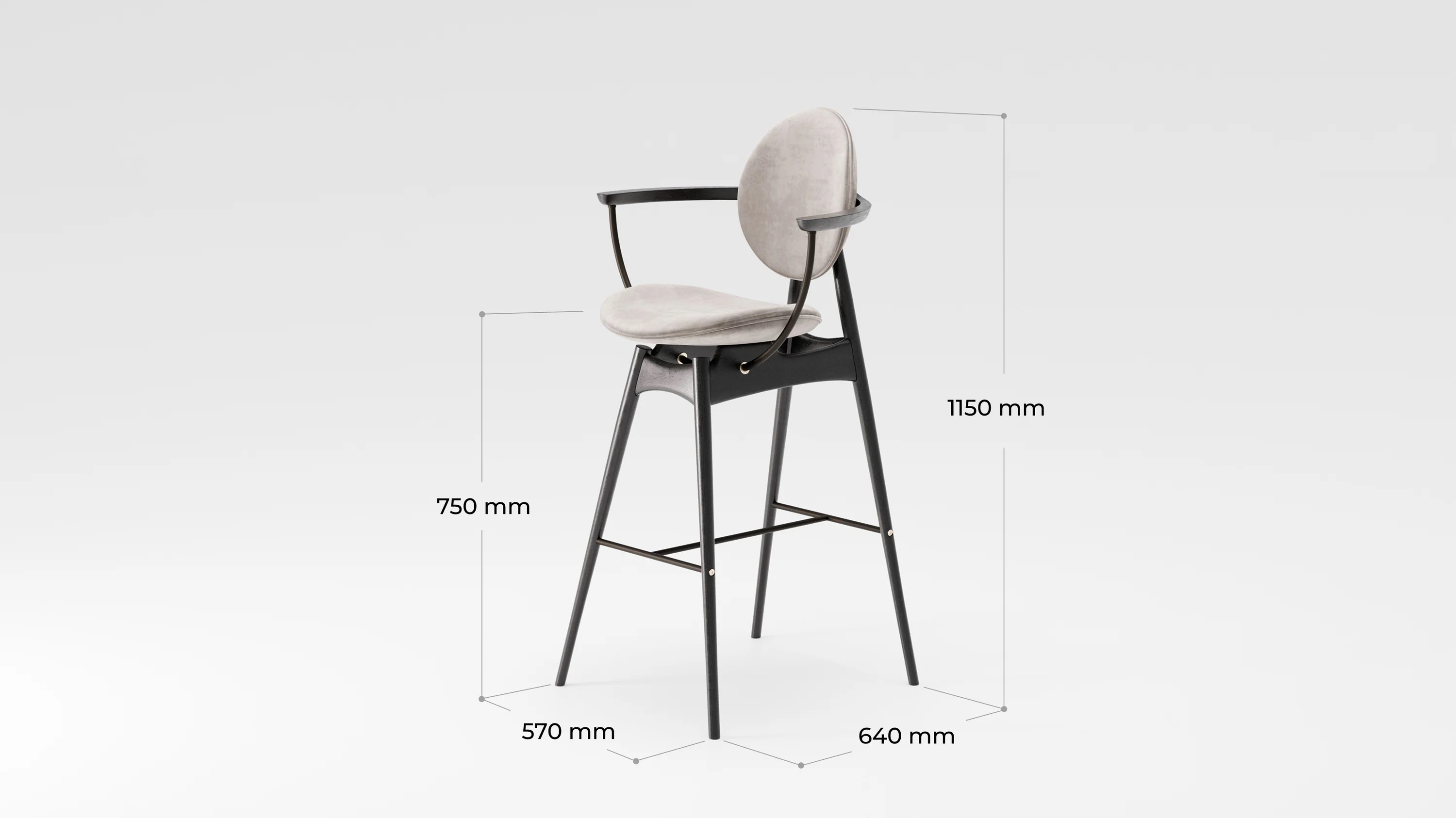 Барный стул Руса БА Комфорт — из массива дуба с мягким тканевым сиденьем и подлокотниками. Стиль, комфорт и надёжность, которые идеально дополнят барную стойку или кухню.