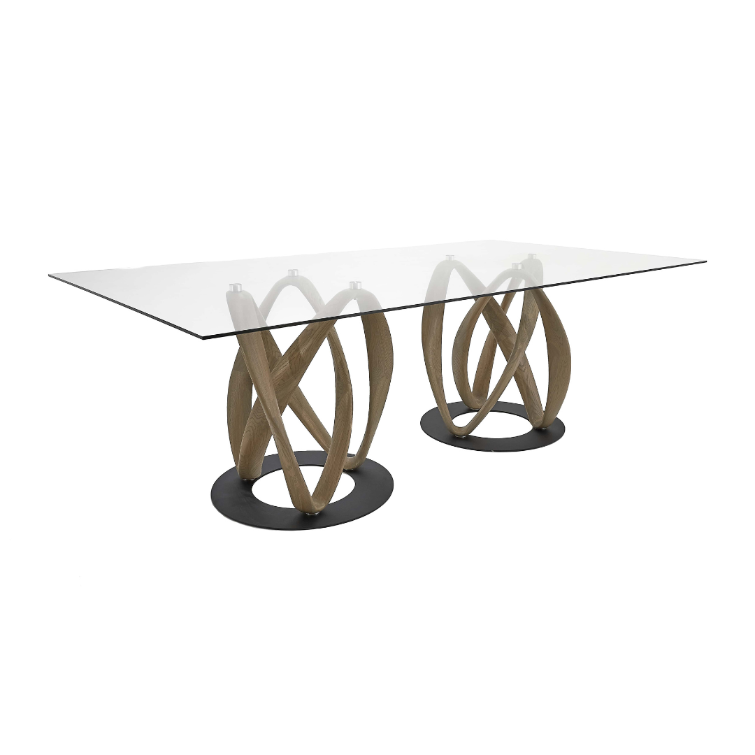 Стол стеклянный «Онеда» двойной — стильный обеденный стол с прямоугольной стеклянной столешницей толщиной 8 мм и опорами из массива дуба. Оригинальный дизайн и выбор оттенков делают его ярким акцентом любого интерьера.