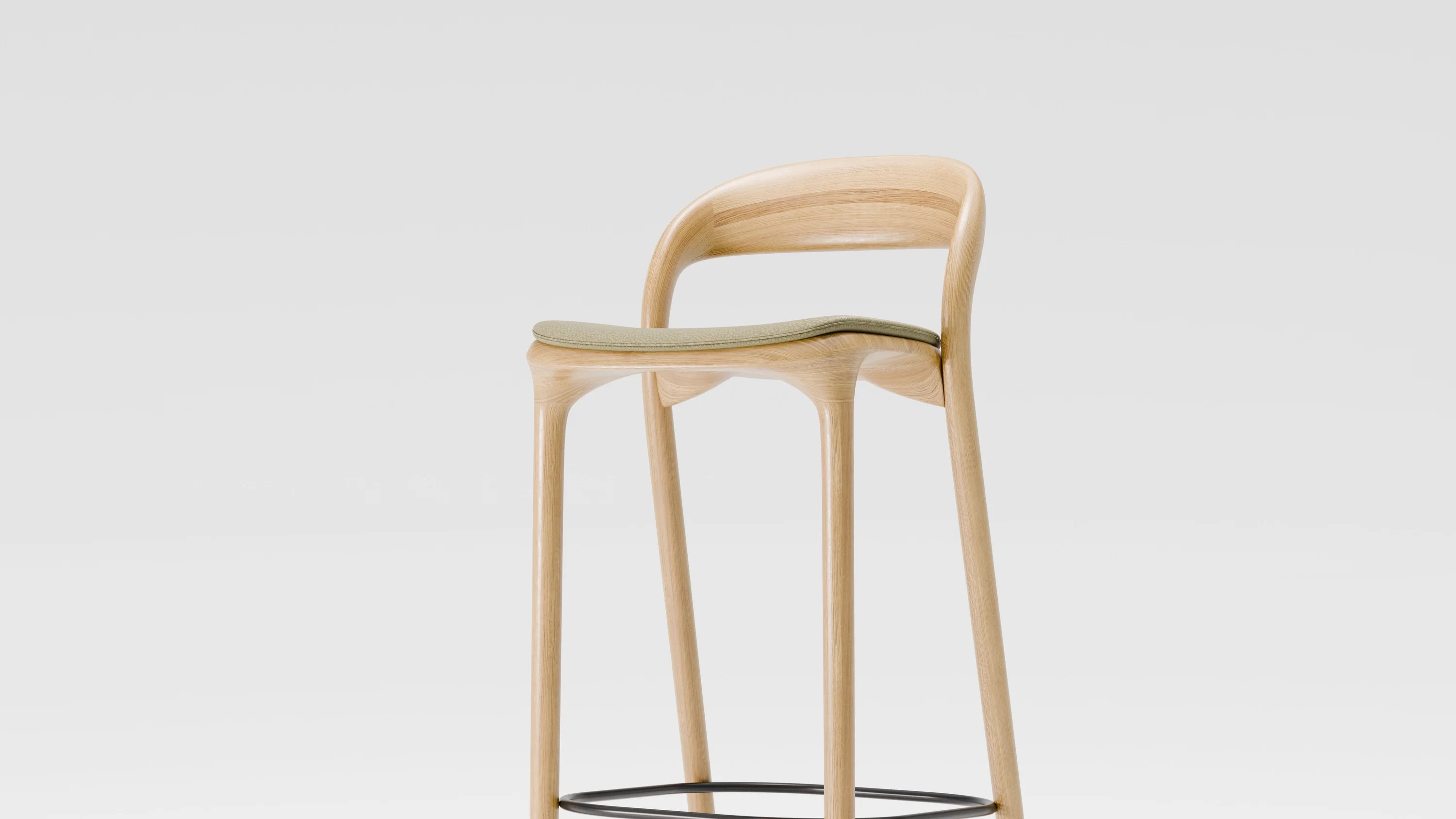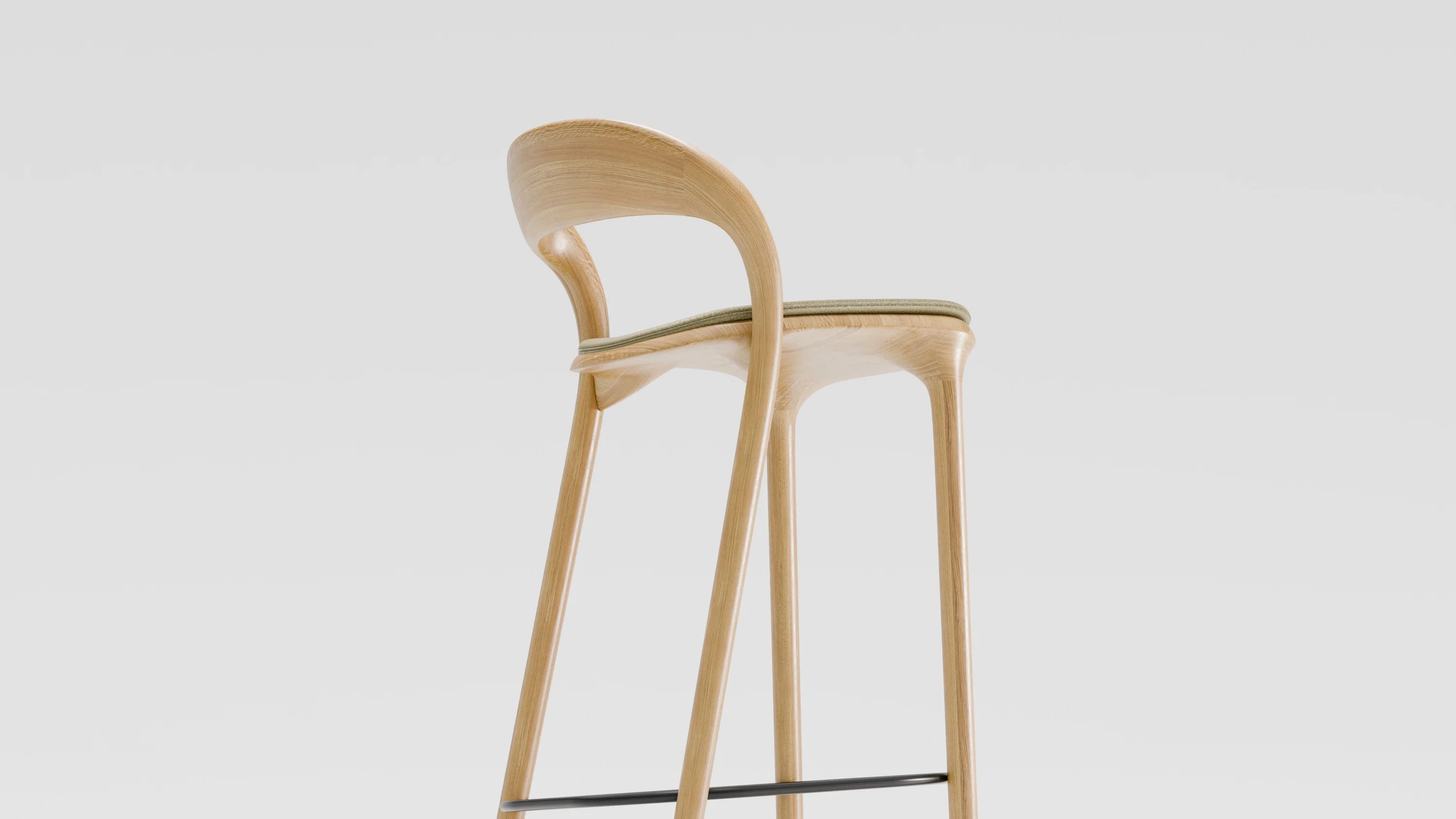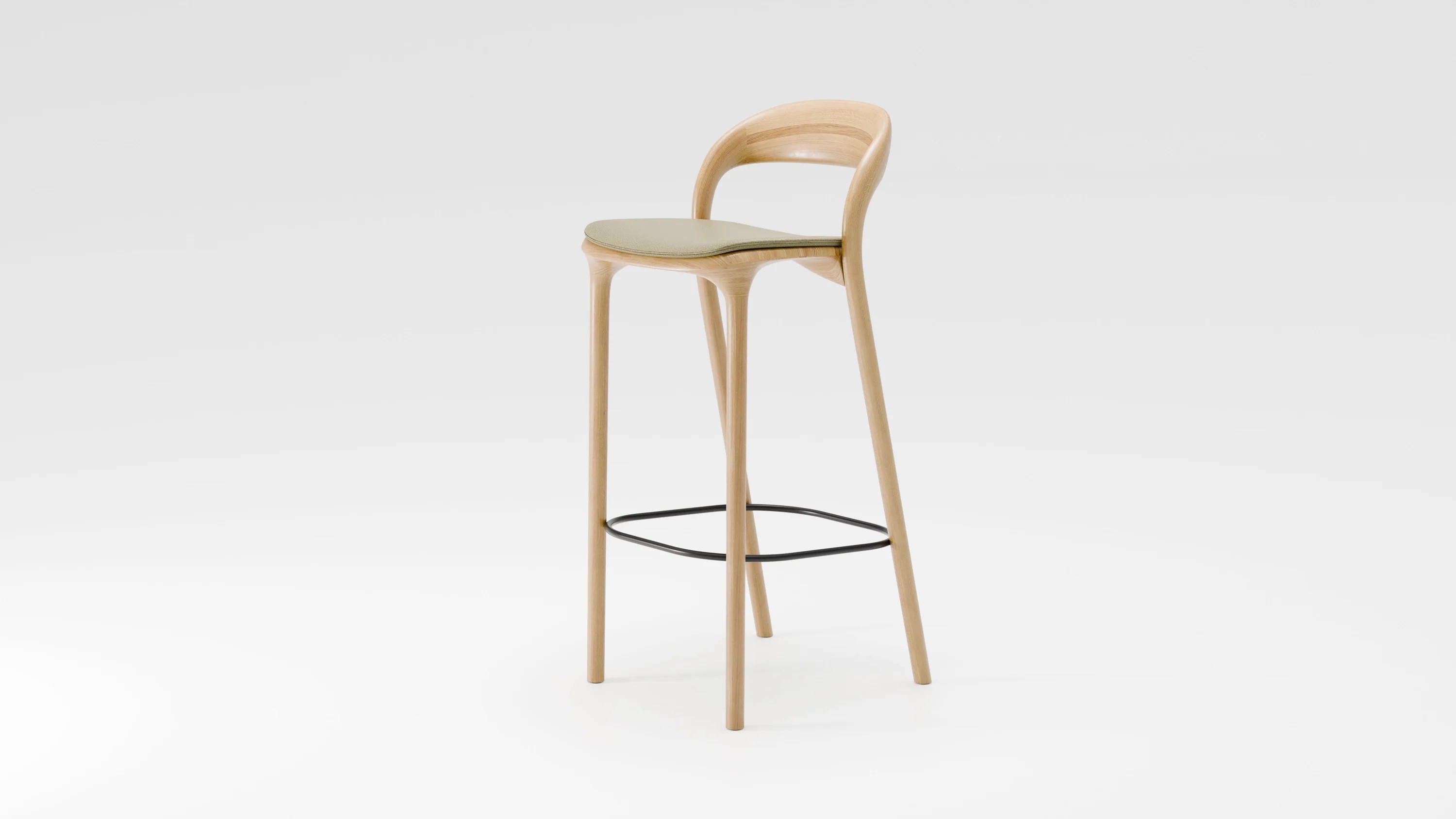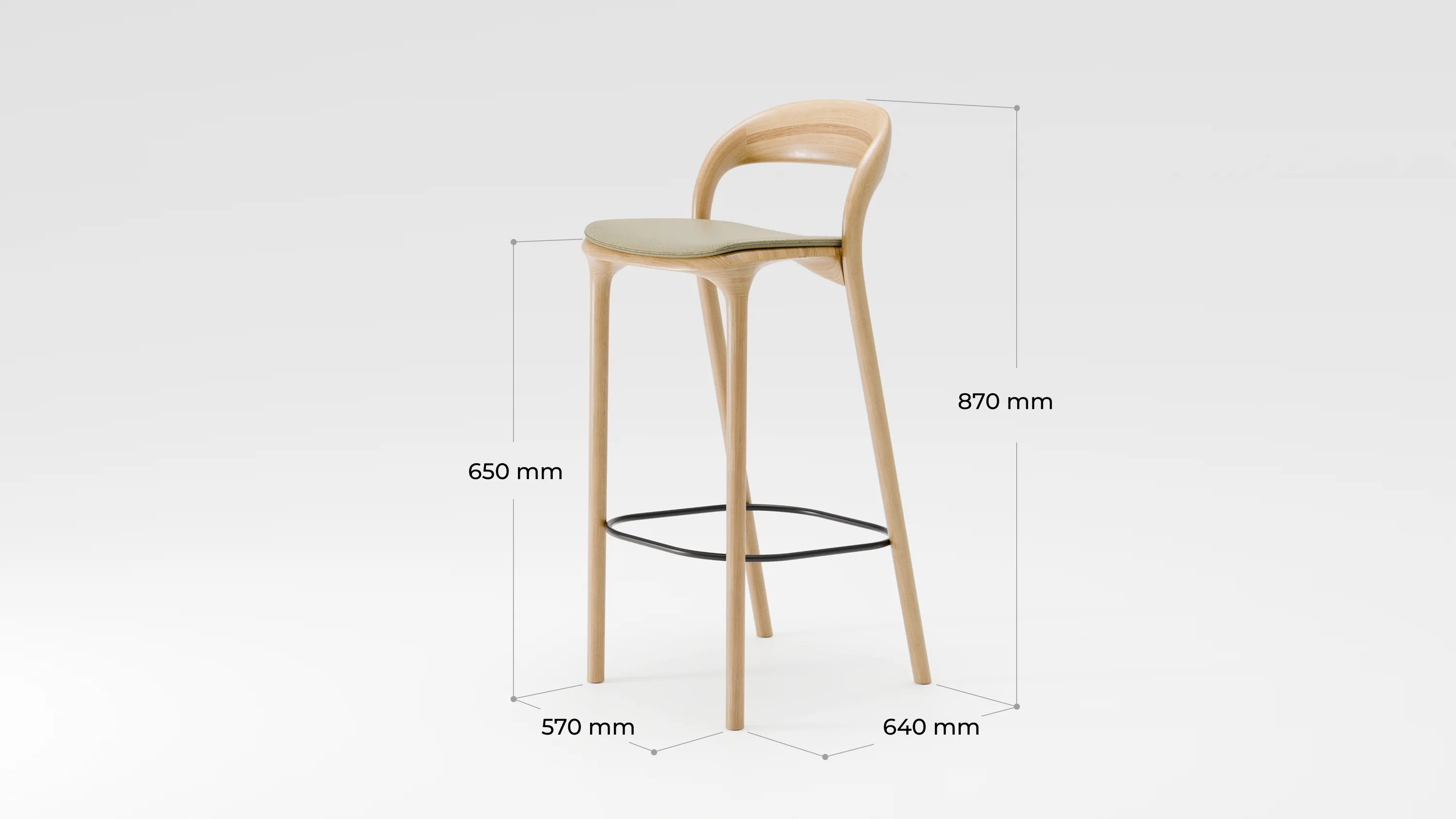 Полубарный стул из массива дуба с мягким сиденьем и высокой спинкой. Элегантный, прочный и комфортный — идеален для кухни и современных интерьеров.