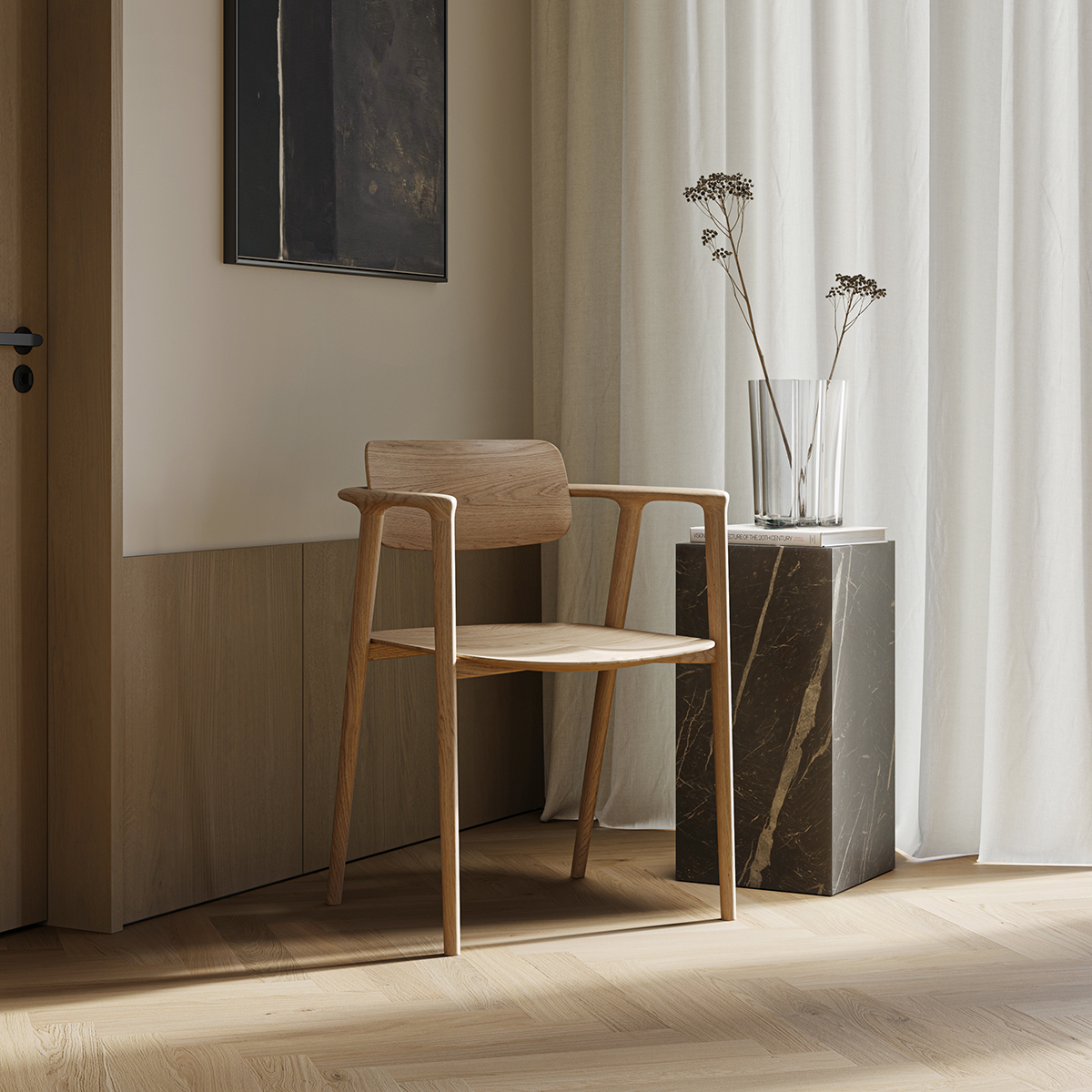 Стул Бетти без мягкого сиденья из массива дуба — сочетание современного стиля и надежности. Лаконичный дизайн без мягких элементов акцентирует внимание на уникальной текстуре дерева и чистоте линий.