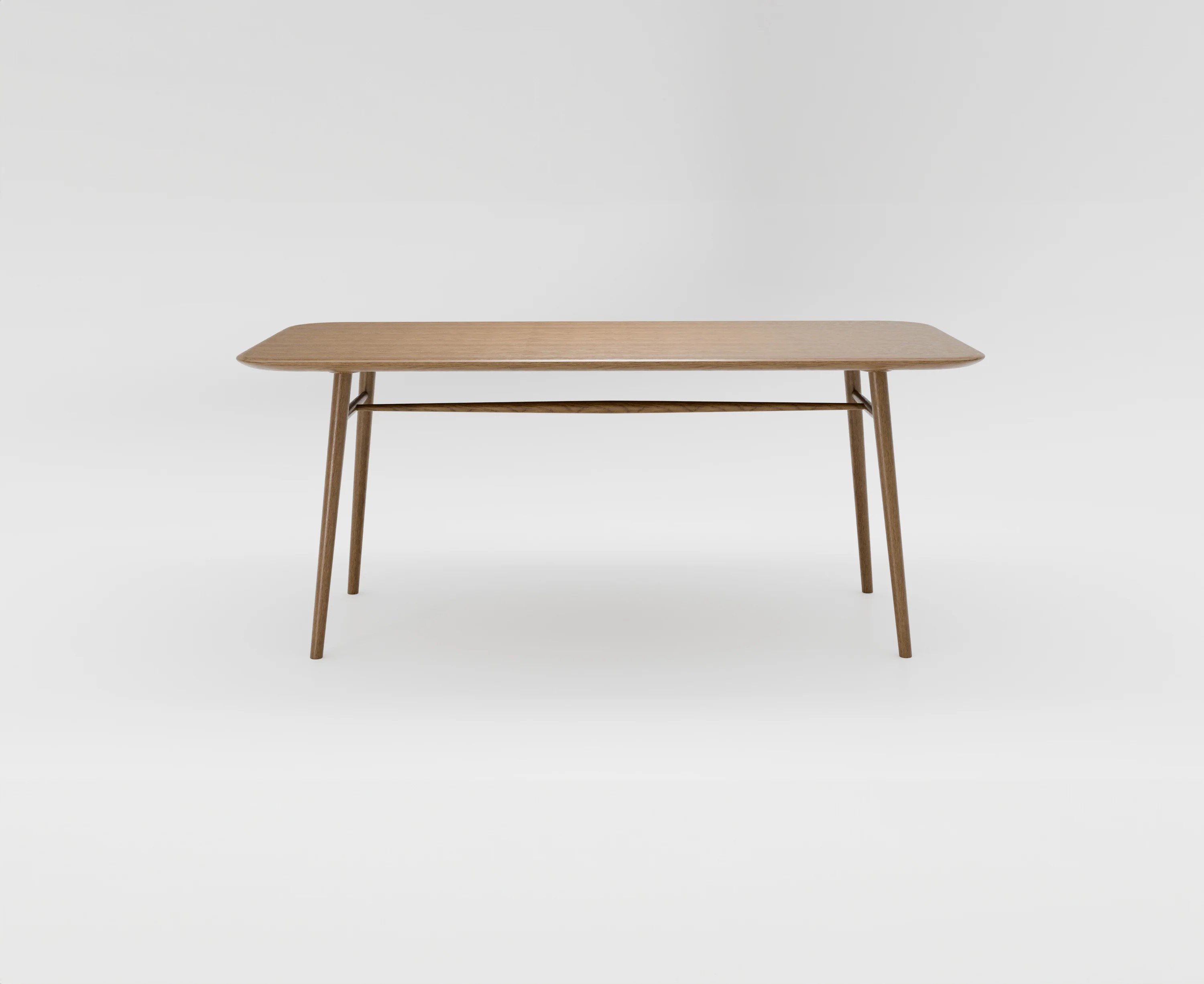 Обеденный стол Вербания из массива дуба со скруглёнными углами и лёгким визуально подстольем. Надёжная конструкция, размеры 140–200 см, несколько оттенков древесины на выбор.